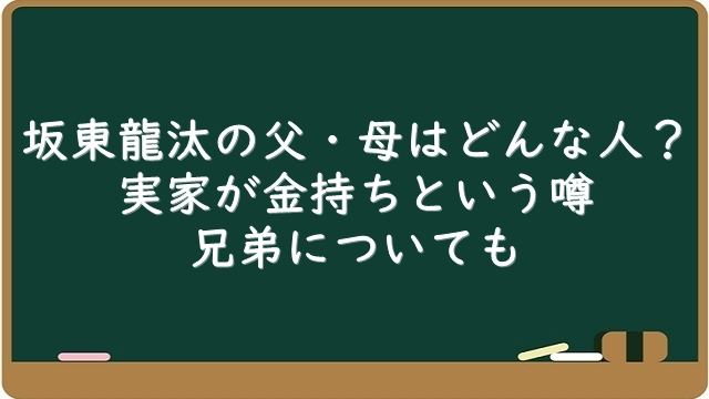 今回は、ドラマや映画で活躍中の若手俳優・坂東龍汰さんについて、その父と母がどんな人なのか、また実家が金持ちという噂の真相や兄弟について調査しました。